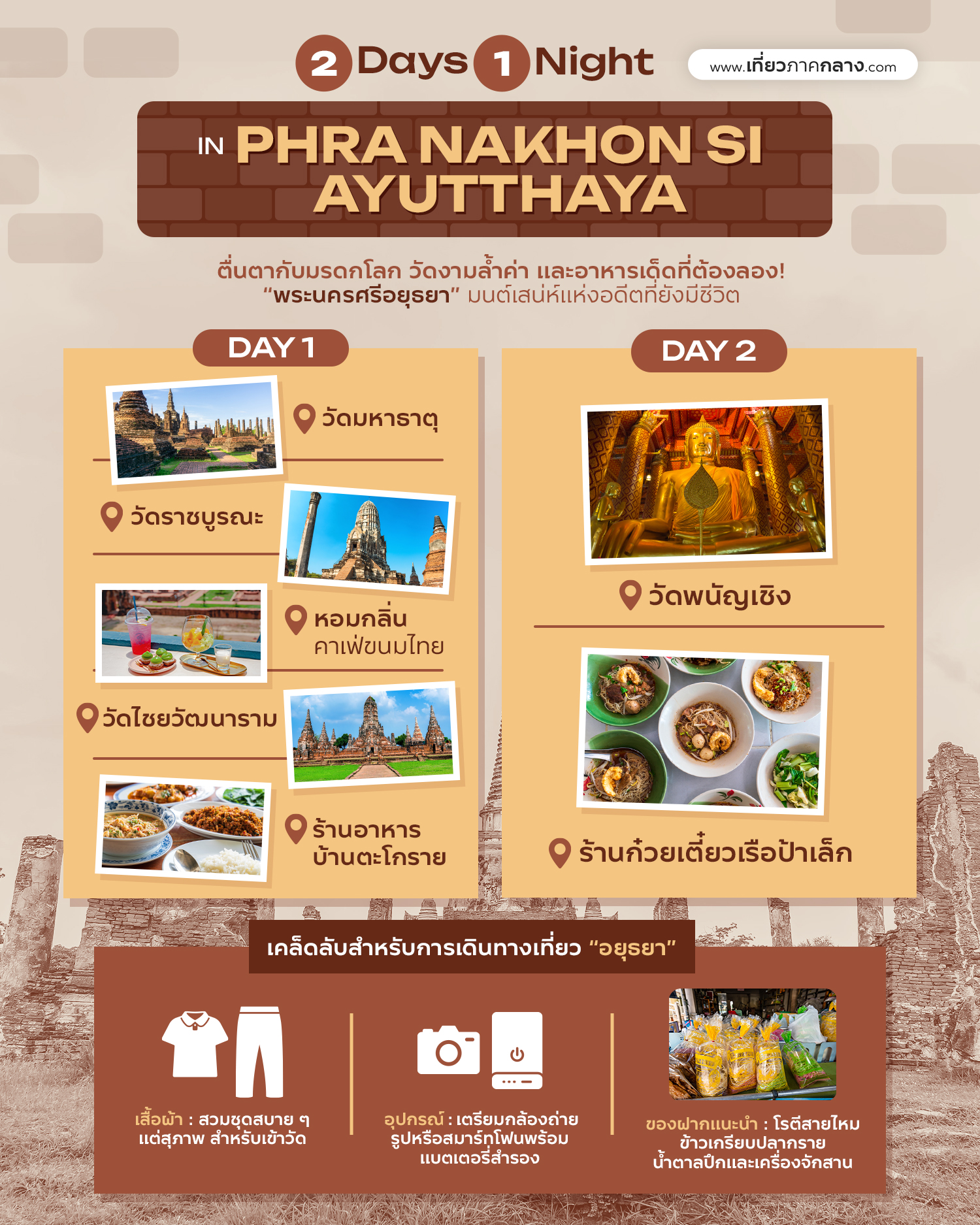 เคล็ดลับเพิ่มเติมสำหรับการเดินทางในอยุธยา
